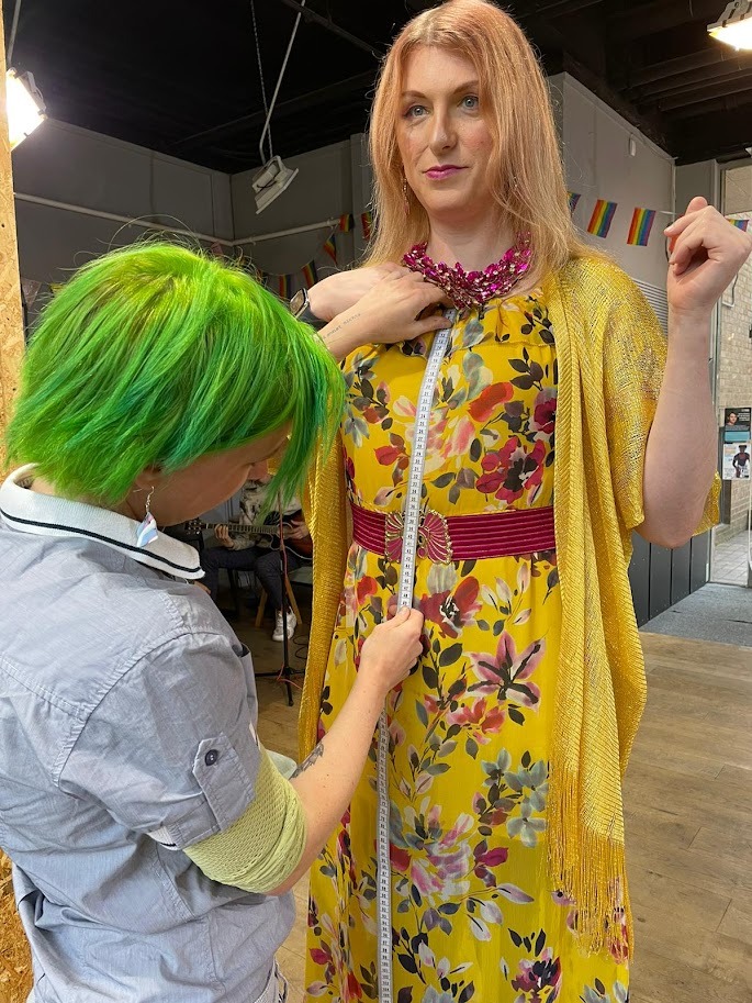 Now, Baal is focussing on the further development of a new transpositive, transfeminine clothes size. The idea being, that the measurements of 500 ( or more of course ;-) Transwomen will be collected, to create averages to then create a valid and reliable clothes size, based on real peoples bodies. This new clothes size will be used to make feminine looking clothes for mostly ( but not exclusively of course) non-cis-female people. It will not be for Baal alone though. Base patterns will be developed in the new size so other labels can design clothes, using the new system, too.